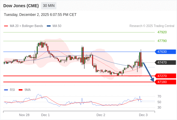 在 47630 之下,看跌,目标价位为 47270 ,然后为 47180 。