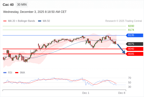 在 8135 之下,看跌,目标价位为 8040 ,然后为 8005 。