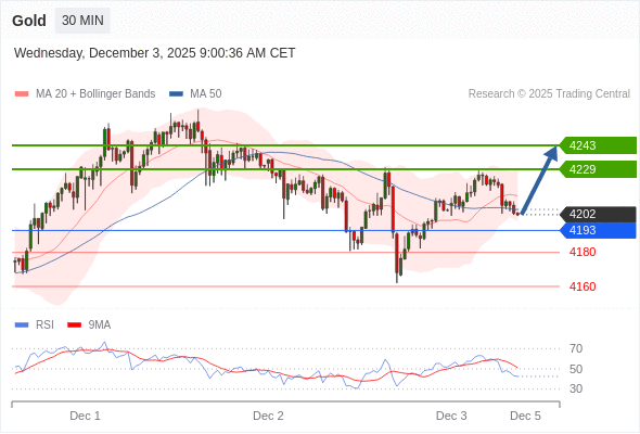 在 4193 之上,看涨,目标价位为 4229 ,然后为 4243 。
