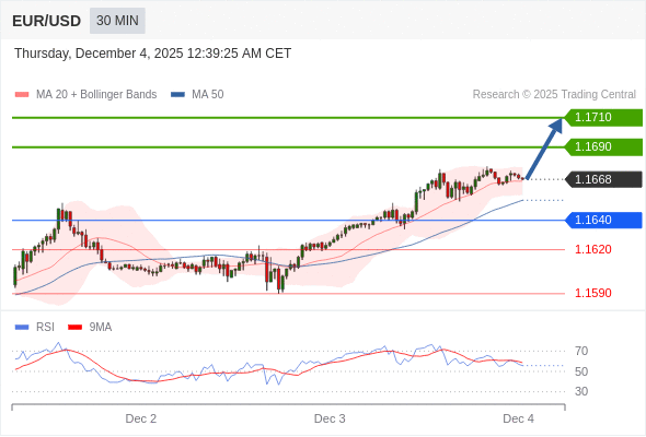 在 1.1640 之上,看涨,目标价位为 1.1690 ,然后为 1.1710 。