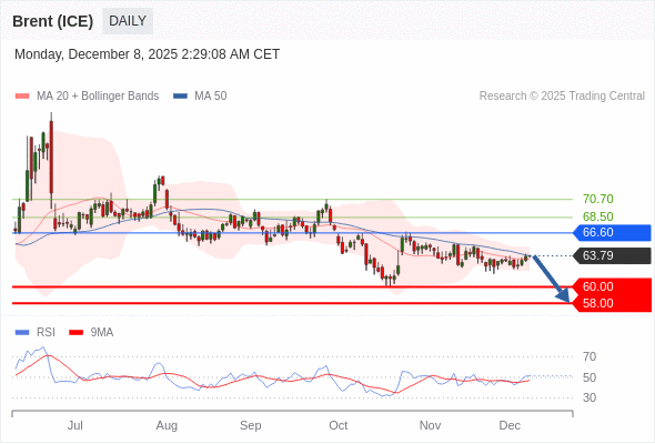 交易策略: 在 66.60 之下,看跌,目标价位为 60.00 ,然后为 58.00 。
