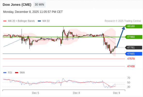 在 47665 之上,看涨,目标价位为 47980 ,然后为 48180 。
