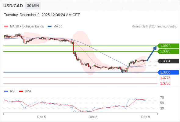 在 1.3800 之上,看涨,目标价位为 1.3895 ,然后为 1.3920 。