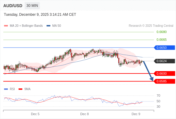 在 0.6650 之下,看跌,目标价位为 0.6600 ,然后为 0.6585 。