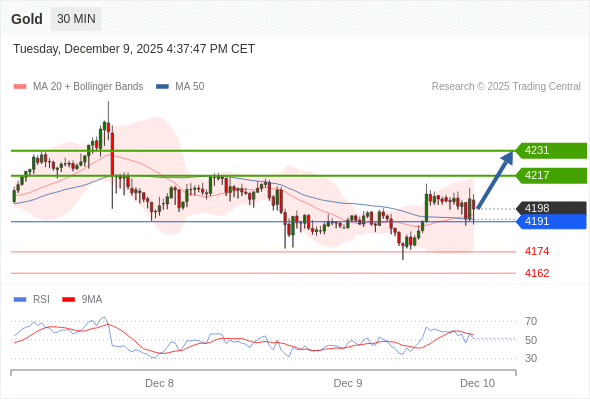 在 4191 之上,看涨,目标价位为 4217 ,然后为 4231 。