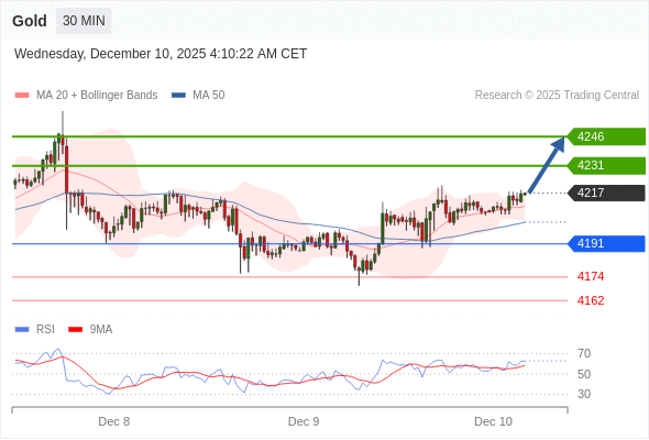 在 4191 之上,看涨,目标价位为 4231 ,然后为 4246 。