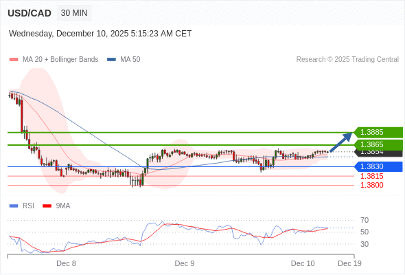 在 1.3830 之上,看涨,目标价位为 1.3865 ,然后为 1.3885 。