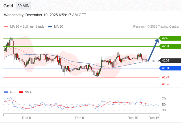 在 4191 之上,看涨,目标价位为 4231 ,然后为 4246 。