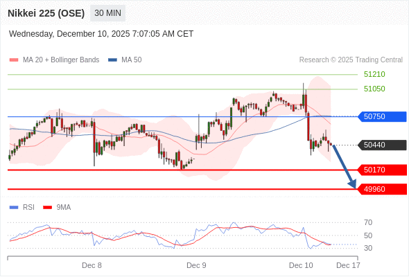 交易策略: 在 50750 之下,看跌,目标价位为 50170 ,然后为 49960 。