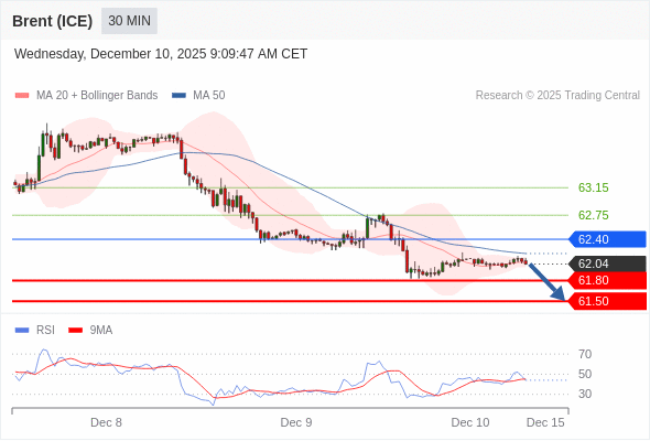 在 62.40 之下,看跌,目标价位为 61.80 ,然后为 61.50 。