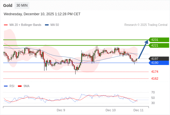 在 4190 之上,看涨,目标价位为 4221 ,然后为 4231 。