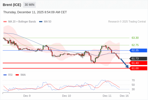 在 62.35 之下,看跌,目标价位为 61.40 ,然后为 61.00 。