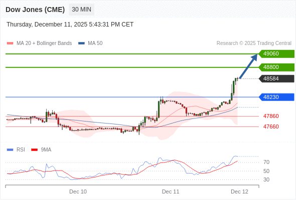 在 48230 之上,看涨,目标价位为 48800 ,然后为 49060 。