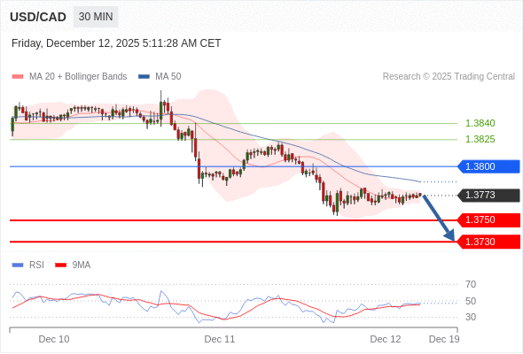 在 1.3800 之下,看跌,目标价位为 1.3750 ,然后为 1.3730 。