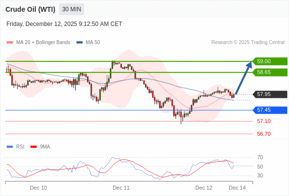 在 57.45 之上,看涨,目标价位为 58.65 ,然后为 59.00 。