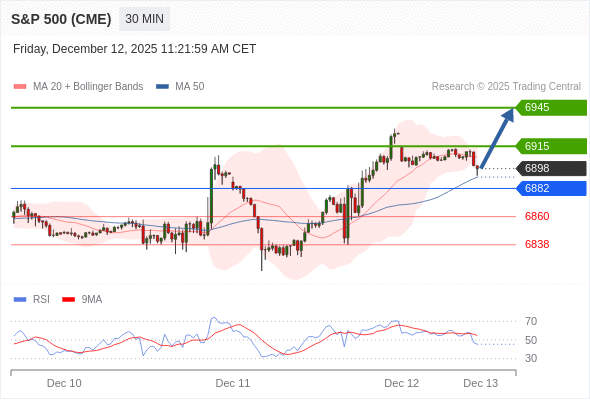 在 6882 之上,看涨,目标价位为 6915 ,然后为 6945 。