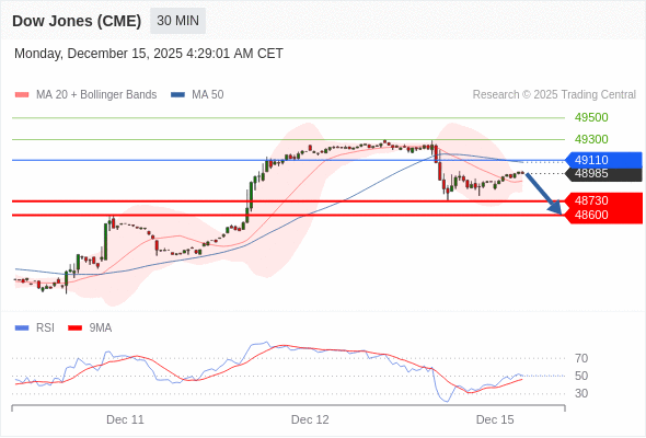在 49110 之下,看跌,目标价位为 48730 ,然后为 48600 。