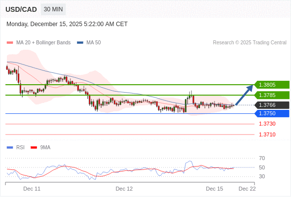 在 1.3750 之上,看涨,目标价位为 1.3785 ,然后为 1.3805 。