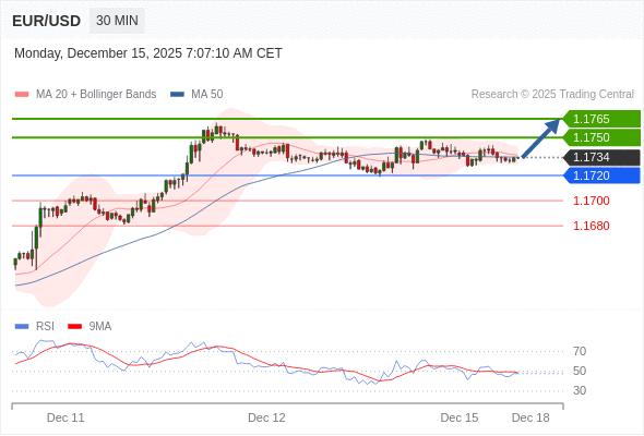 在 1.1720 之上,看涨,目标价位为 1.1750 ,然后为 1.1765 。