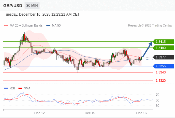 在 1.3355 之上,看涨,目标价位为 1.3400 ,然后为 1.3415 。