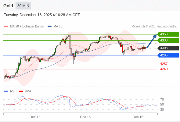 在 4285 之上,看涨,目标价位为 4333 ,然后为 4353 。