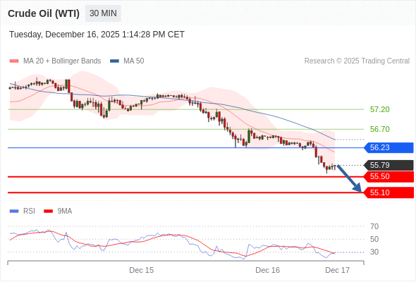 在 56.23 之下,看跌,目标价位为 55.50 ,然后为 55.10 。