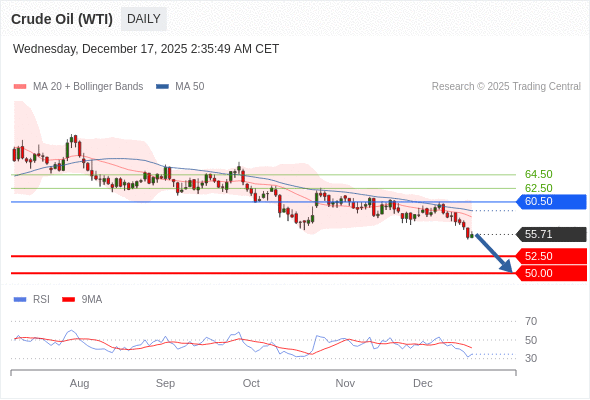 交易策略: 在 60.50 之下,看跌,目标价位为 52.50 ,然后为 50.00 。