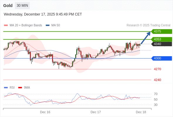 在 4300 之上,看涨,目标价位为 4353 ,然后为 4375 。