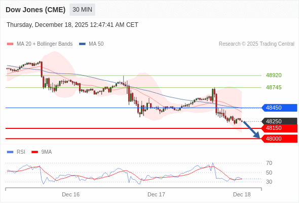 在 48450 之下,看跌,目标价位为 48150 ,然后为 48000 。