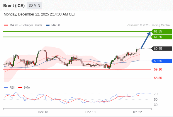 在 59.65 之上,看涨,目标价位为 61.20 ,然后为 61.55 。