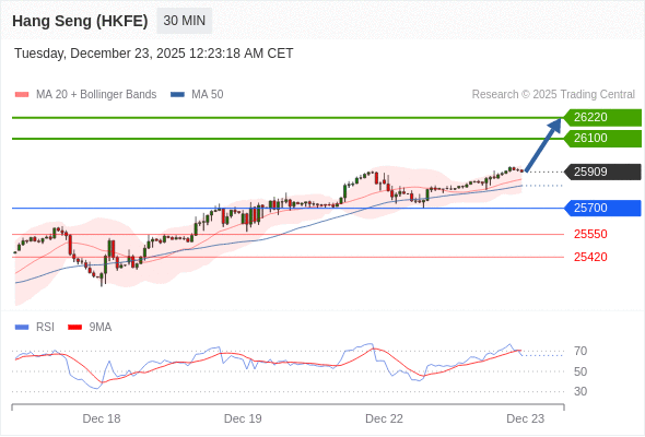 在 25700 之上,看涨,目标价位为 26100 ,然后为 26220 。