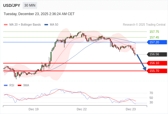 在 157.20 之下,看跌,目标价位为 156.10 ,然后为 155.70 。