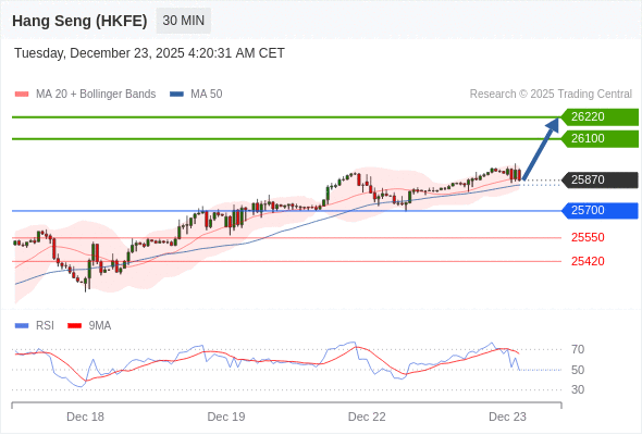 在 25700 之上,看涨,目标价位为 26100 ,然后为 26220 。