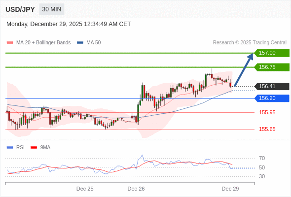 在 156.20 之上,看涨,目标价位为 156.75 ,然后为 157.00 。