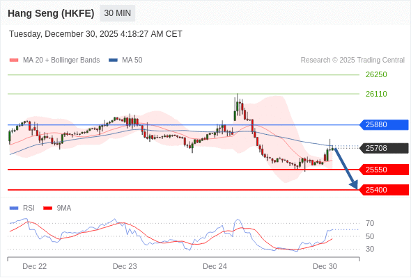 在 25710 之下,看跌,目标价位为 25500 ,然后为 25400 。