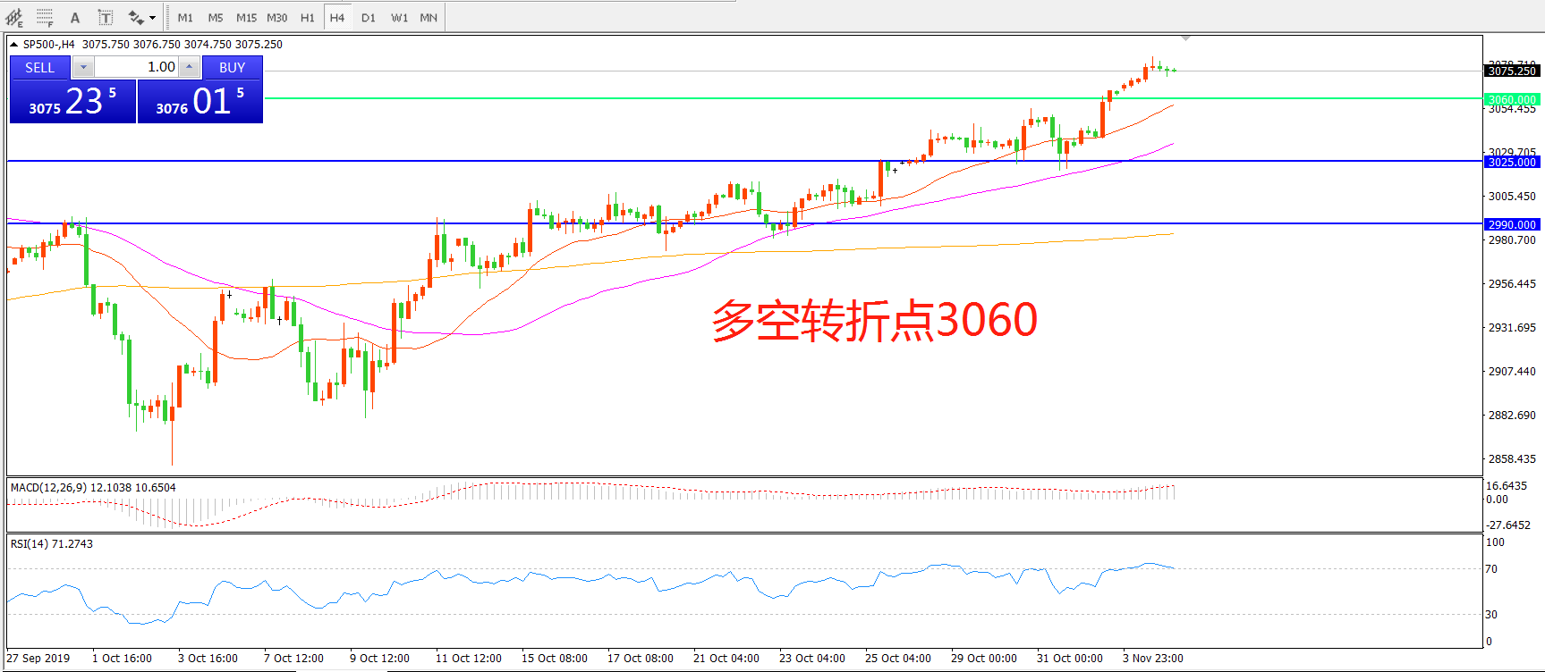 多空转折点:3060.00