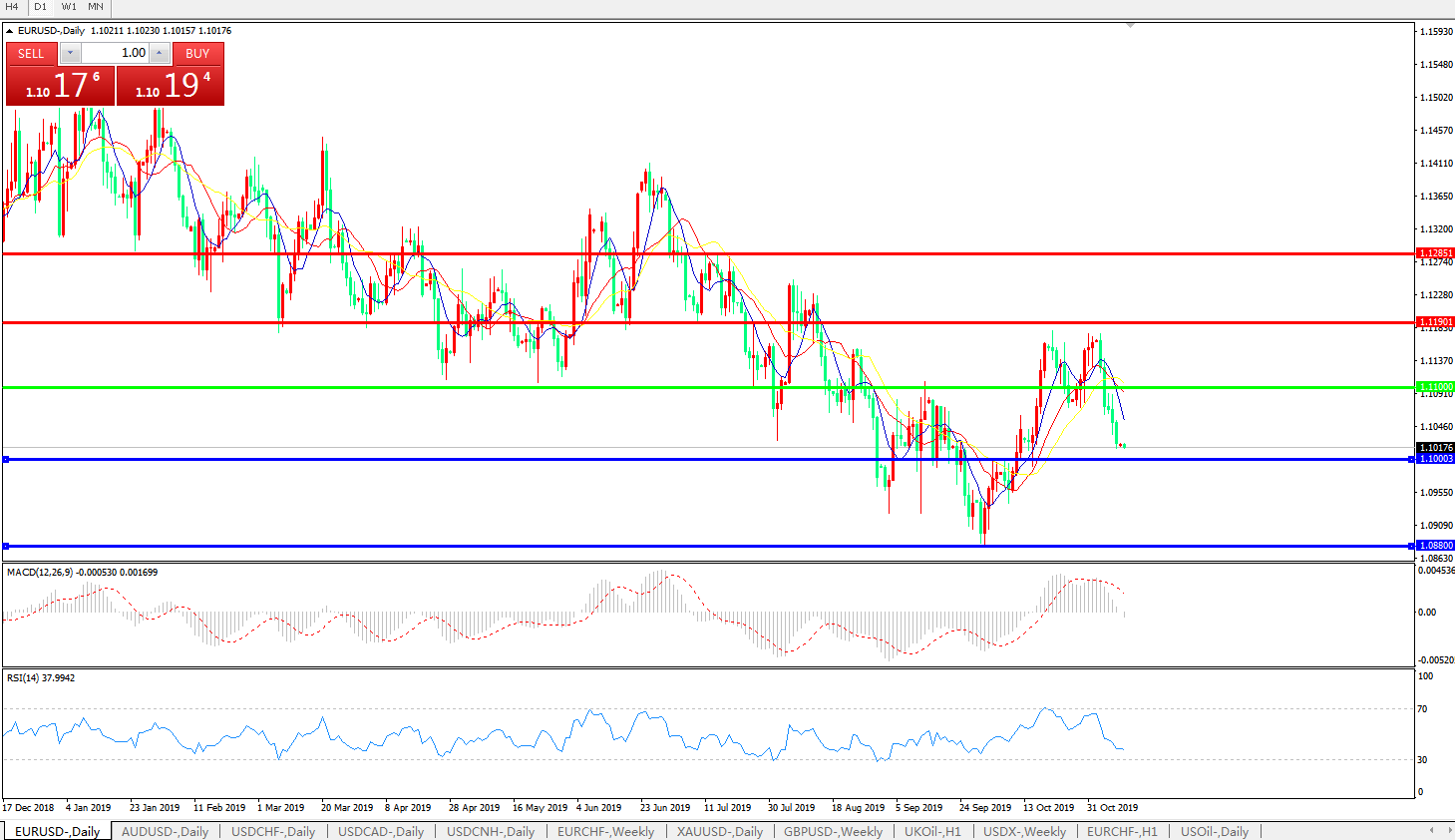 交易策略:1.1100下方看跌,目标1.1000、1.0880