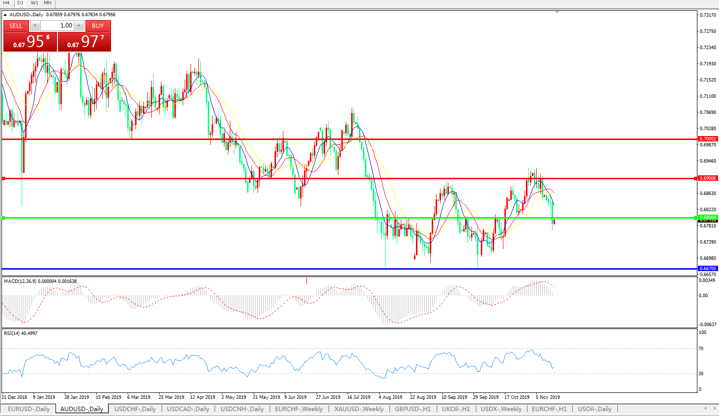 东京三菱日联银行周四讨论了澳元前景,标记在澳洲联储宽松的预期下澳元存在进一步下滑的空间;继10月澳洲就业新增弱于预期后,本交易日亚市澳元表现欠佳,澳元兑美元大幅下跌破位0.6800关口,扭转了此前因建立在贸易乐观情绪上的舒缓反弹; 最近的劳动力市场报告揭示澳大利亚经济10月就业新增拂去1.9万,刷20169月来最低读数,失业率较澳洲联储预测的4.5%水平缓慢升至5.3%在汇价无法升破200MA均线阻力位0.6940之后此前的舒缓反弹已经动能耗尽,这一走势符合我方预测的当澳洲联储进一步迈向非传统型宽松之际澳元维持下行风险的观点; 当前澳联储在传统型宽松领域空间鲜少,今年迄今澳洲联储已经降息75个点至0.75%,自此以后澳元利率市场在今晚疲弱数据公布后对明年初降息25个点的定价已经100%