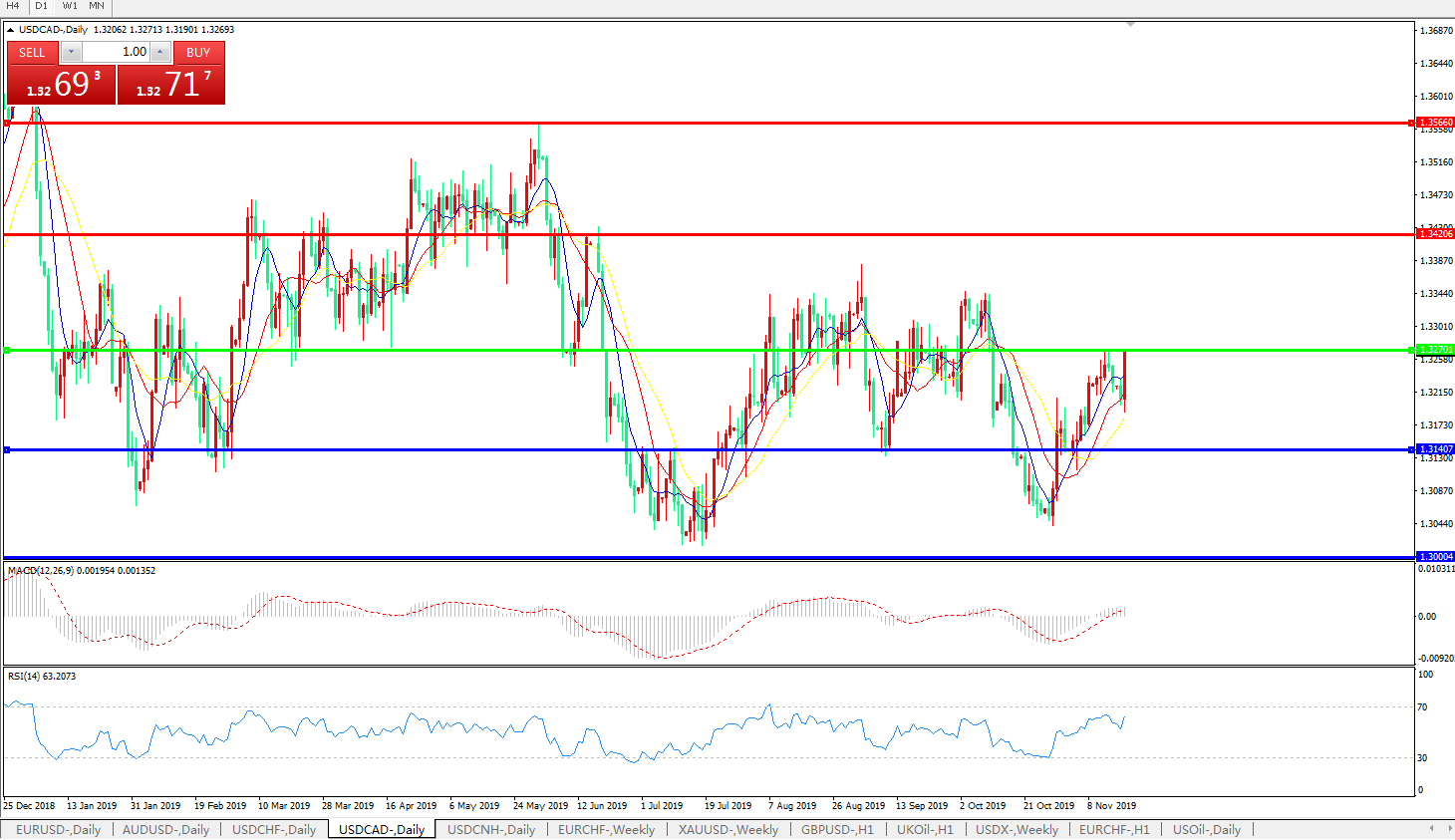 美元兑加元USDCAD 日线图: