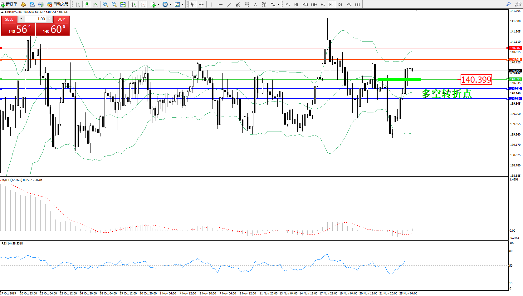 交易策略:140.399上方看涨,目标140.769140.987