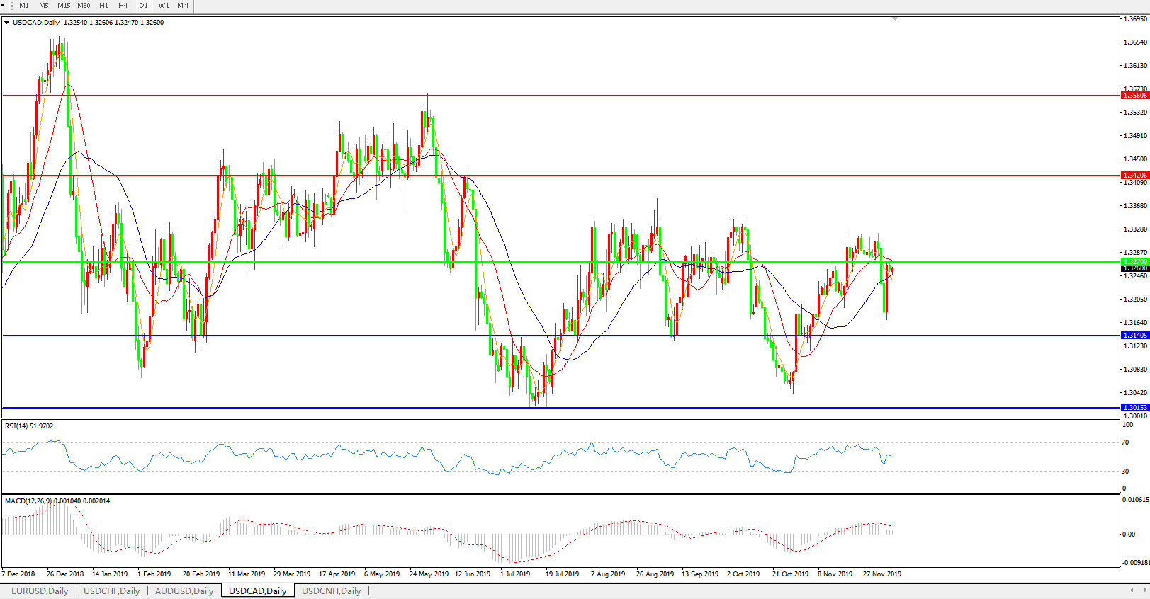 美元兑加元USDCAD 日线图: