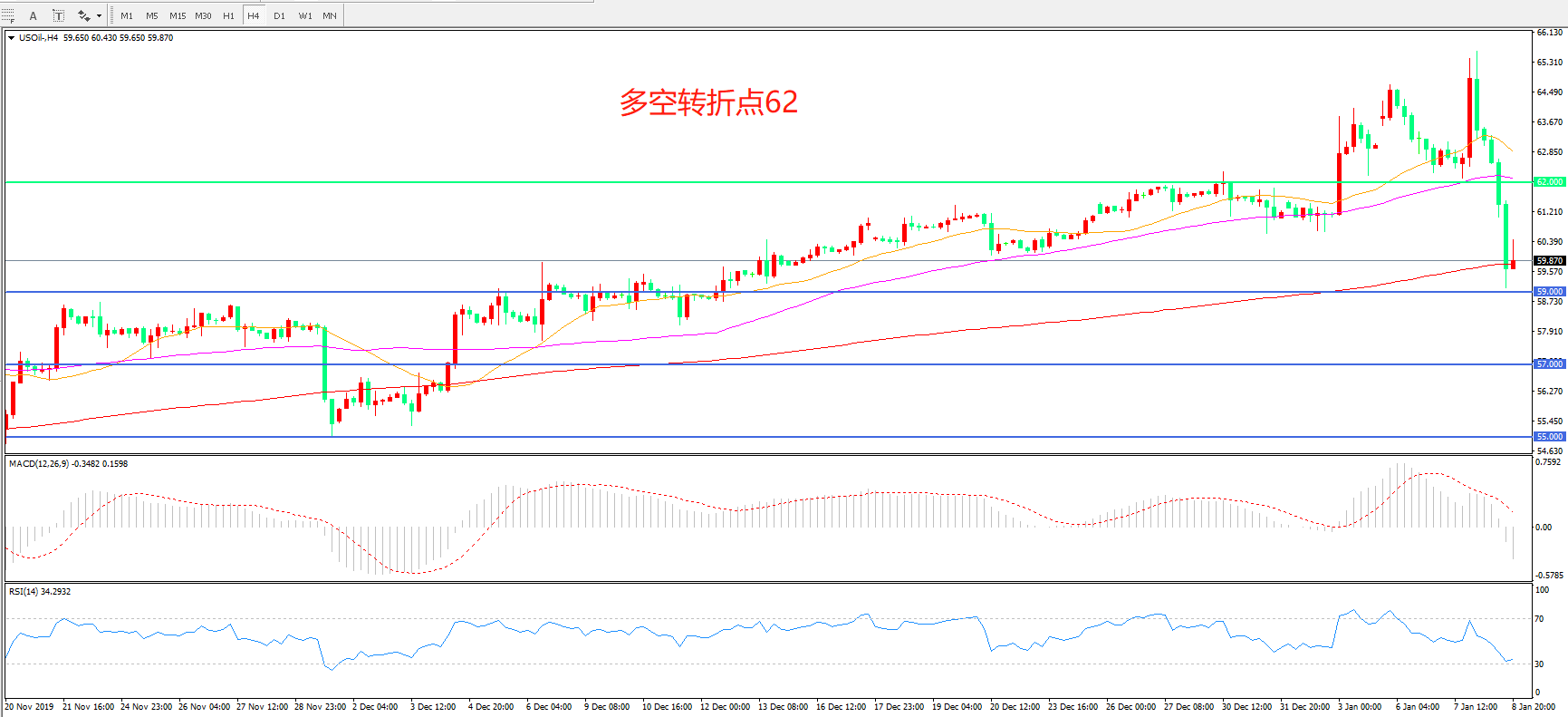 多空转折点:62.00