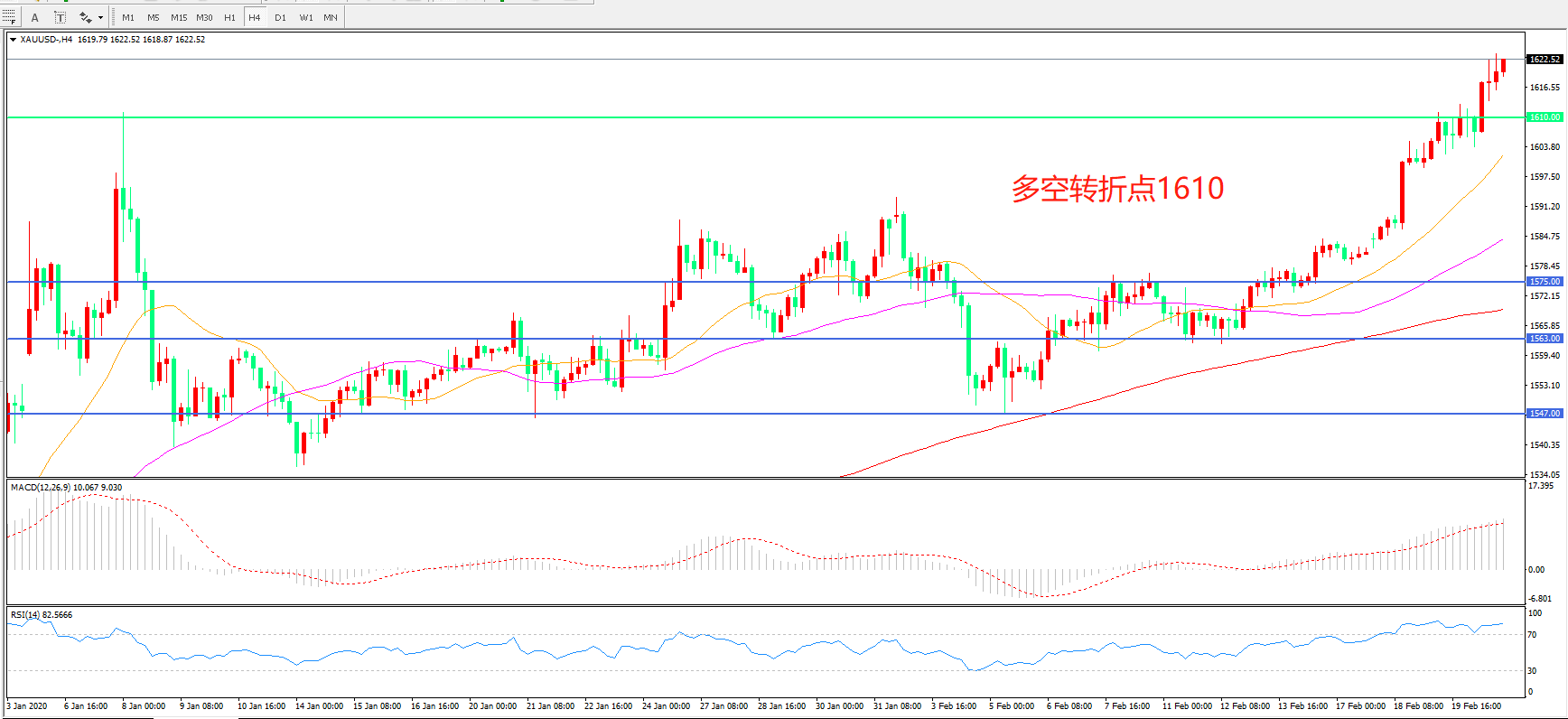 交易策略:在1610.00之上看涨,目标1650.00   1700.00