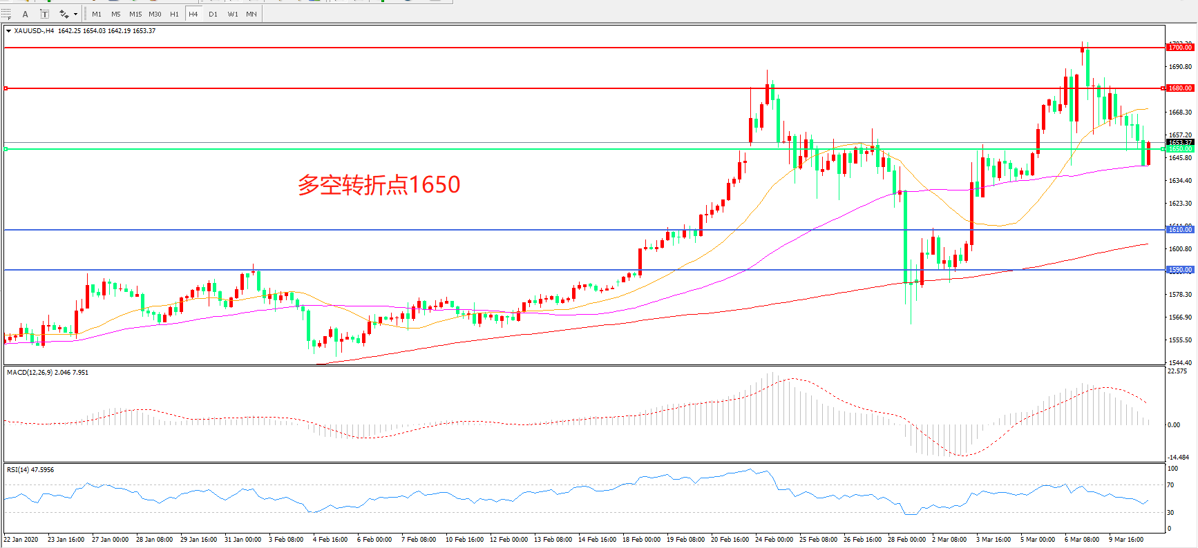 多空转折点:1650.00