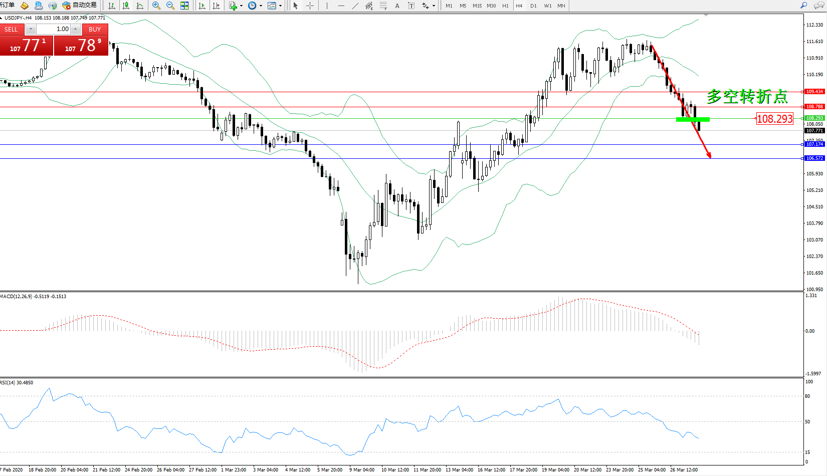 多空转折点:108.293
