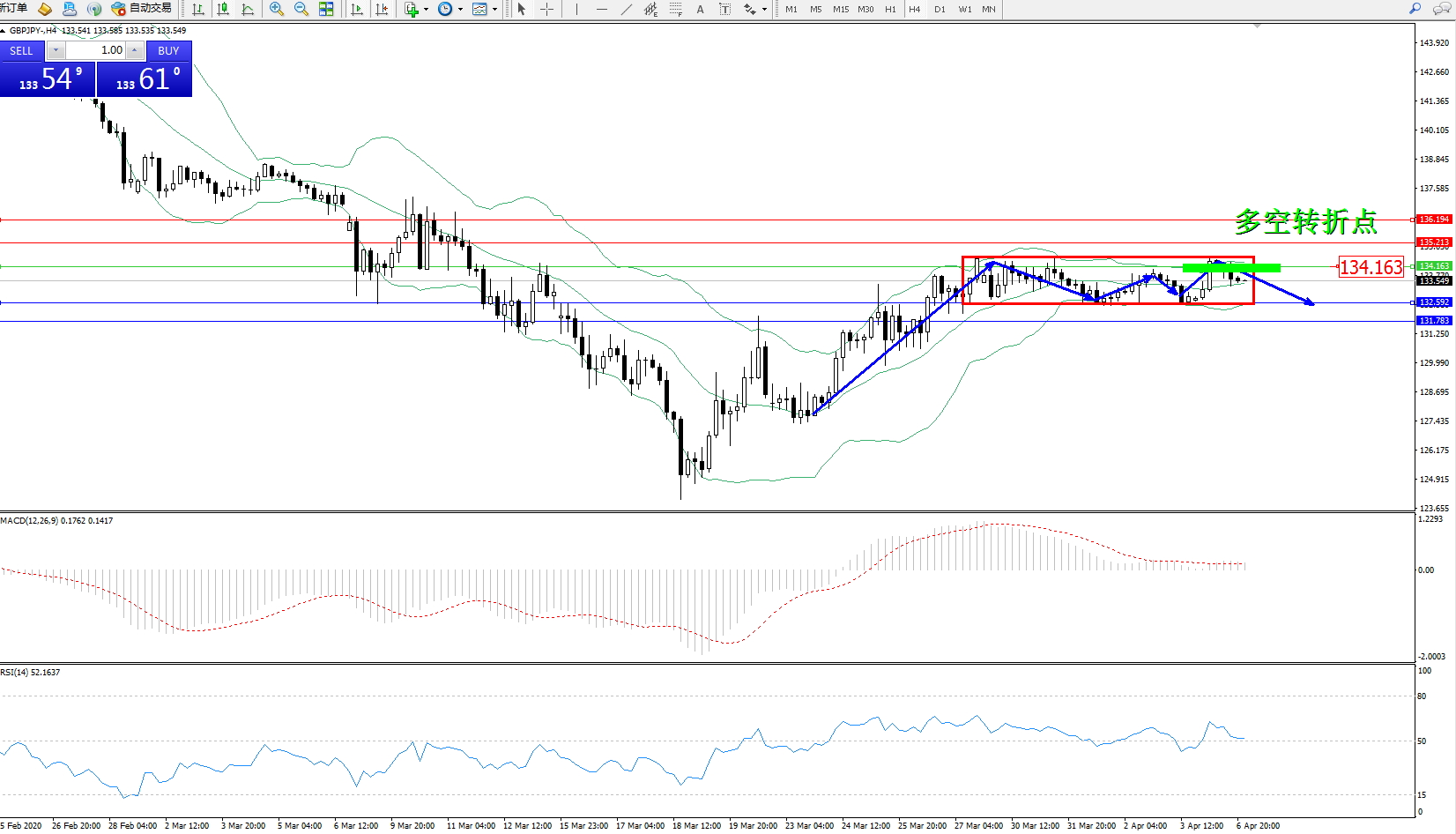 交易策略:134.163下方看跌,目标132.592131.783