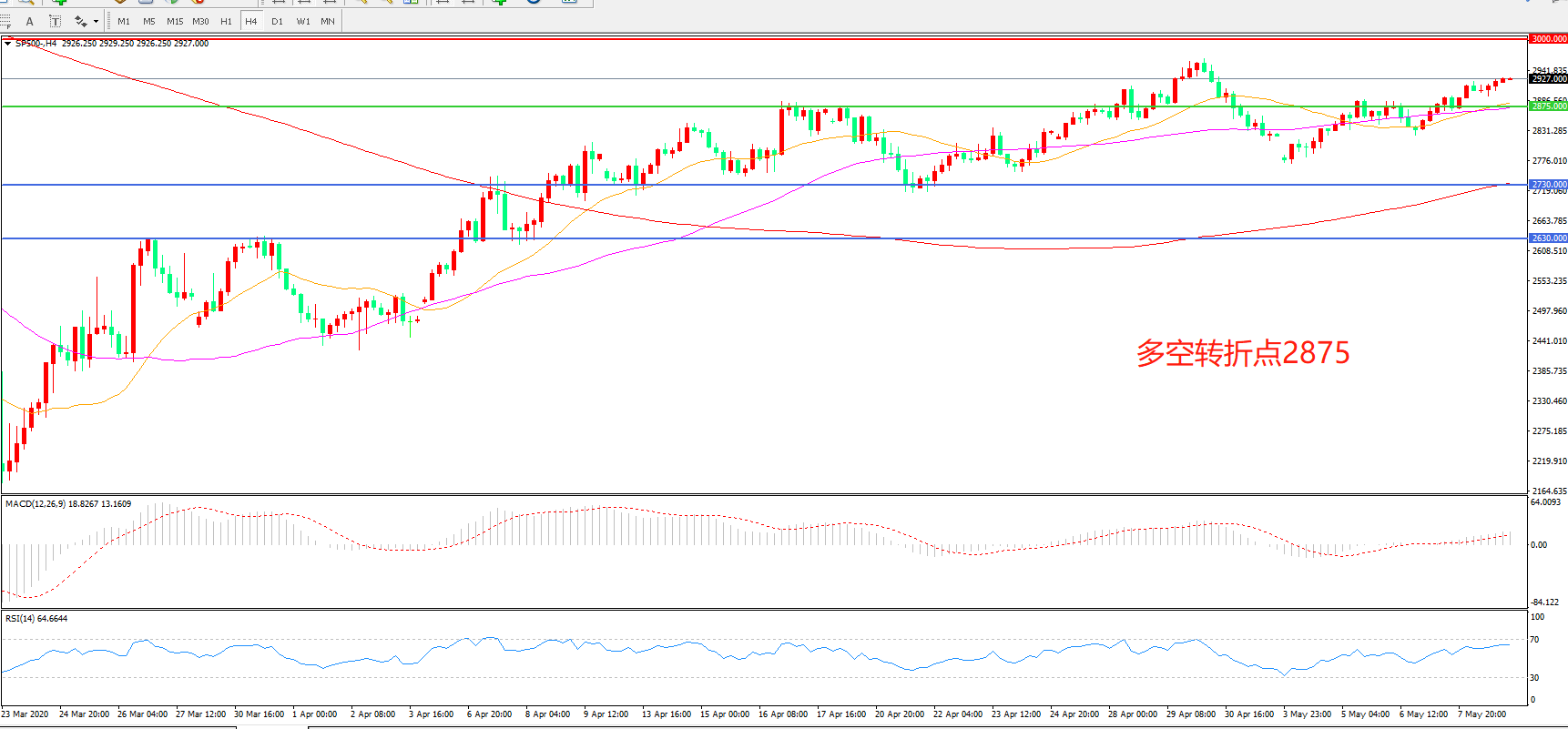 标普500 SP500   4小时图