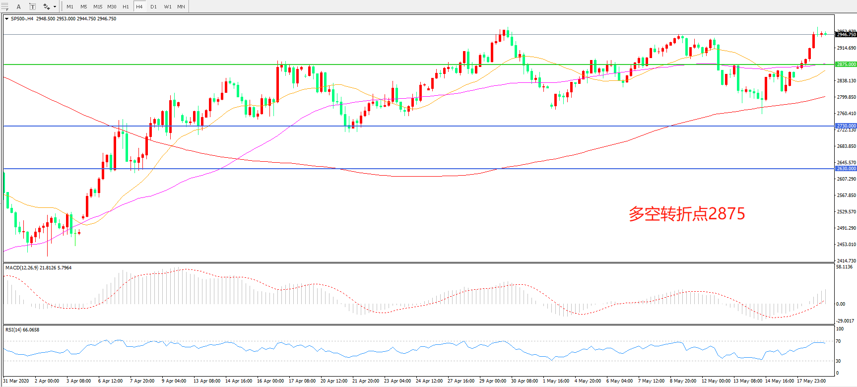 标普500 SP500   4小时图