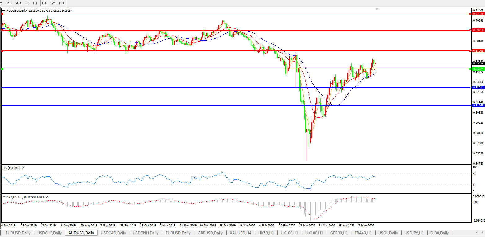 交易策略:0.6500上方看涨,目标0.6700、0.6920