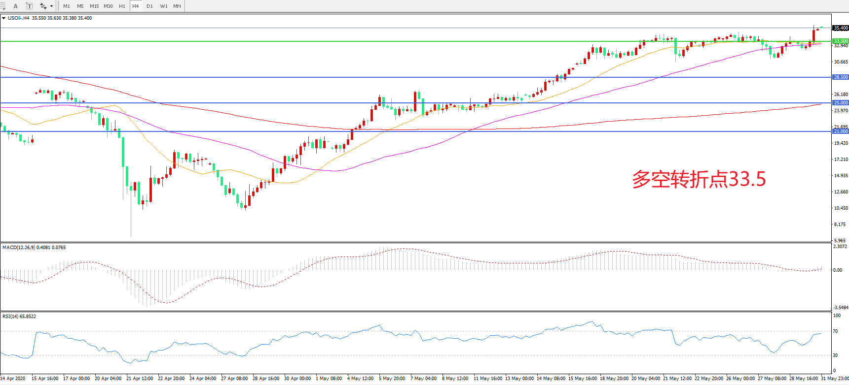 目前有OPEC+消息人士称,沙特正在讨论维持减产力度,而不是在7月削减减产规模,但目前仍存在一些疑虑,因为俄罗斯尚未支持这一决定,OPEC+将在6月第二周举行在线会议,讨论产量政策,务必保持关注,尤其是俄罗斯方面的表态。